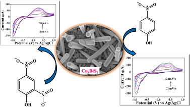 Morphology controlled Cu3BiS3 nanostructures: superior electrocatalytic sensing of organic nitro compounds.