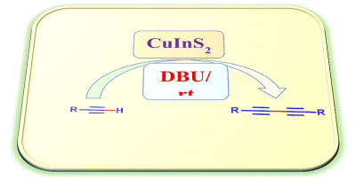 Single-step synthesis of ternary metal chalcogenides (sf-CuInS2 and sf-CuInSe2) stripped off the organic cover and their use as a catalyst for symmetric Glaser Hay coupling reactions.