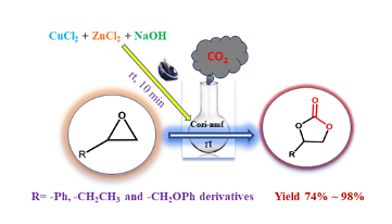 High yield room temperature conversion of carbon dioxide into cyclic carbonates catalyzed by mixed metal oxide (CuO-ZnO) nano/micro-flakes (Cozi-nmf).