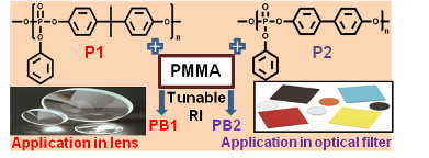 Poly(methyl methacrylate)/polyphosphate blends with tunable refractive indices for optical applications.